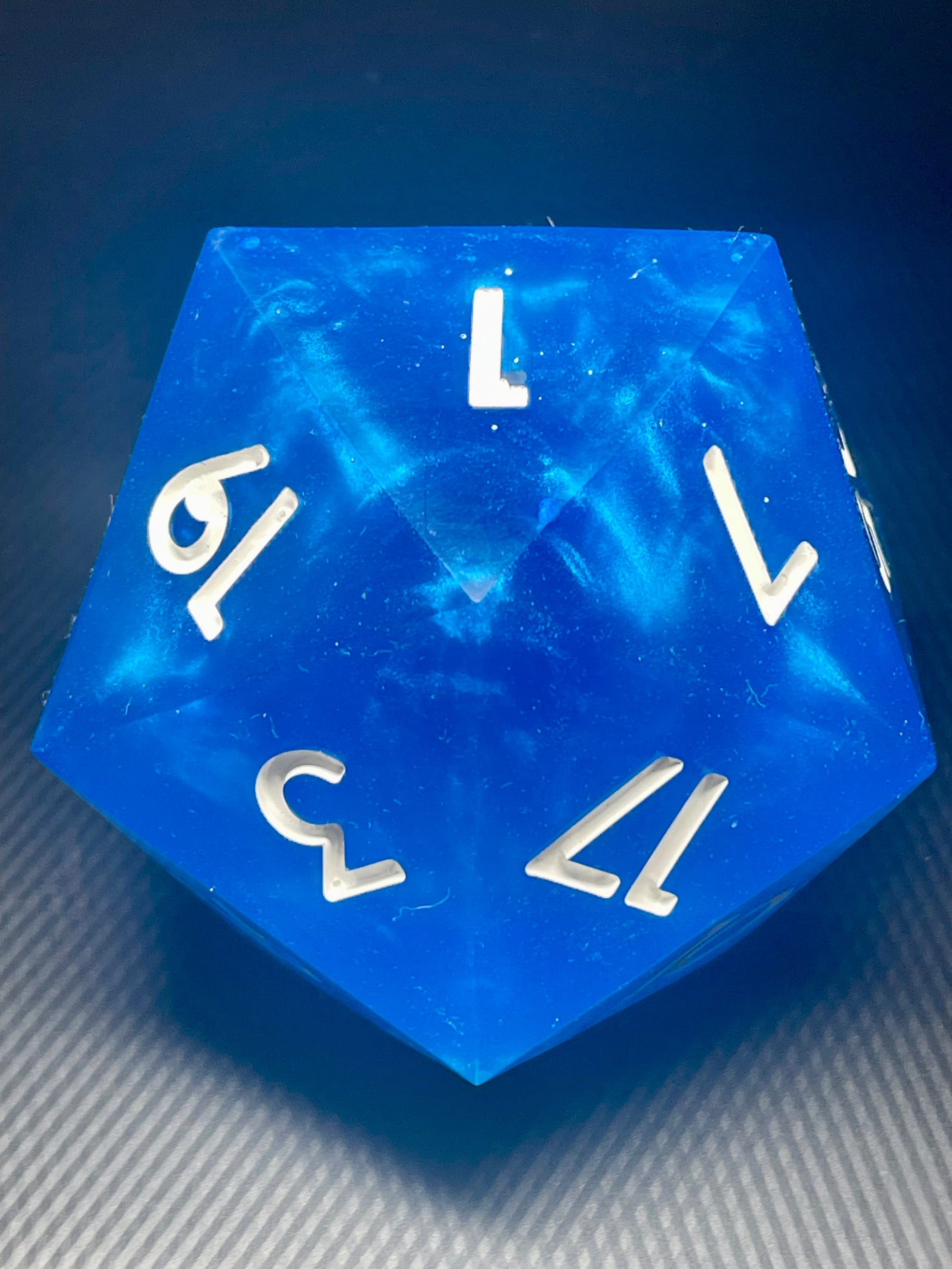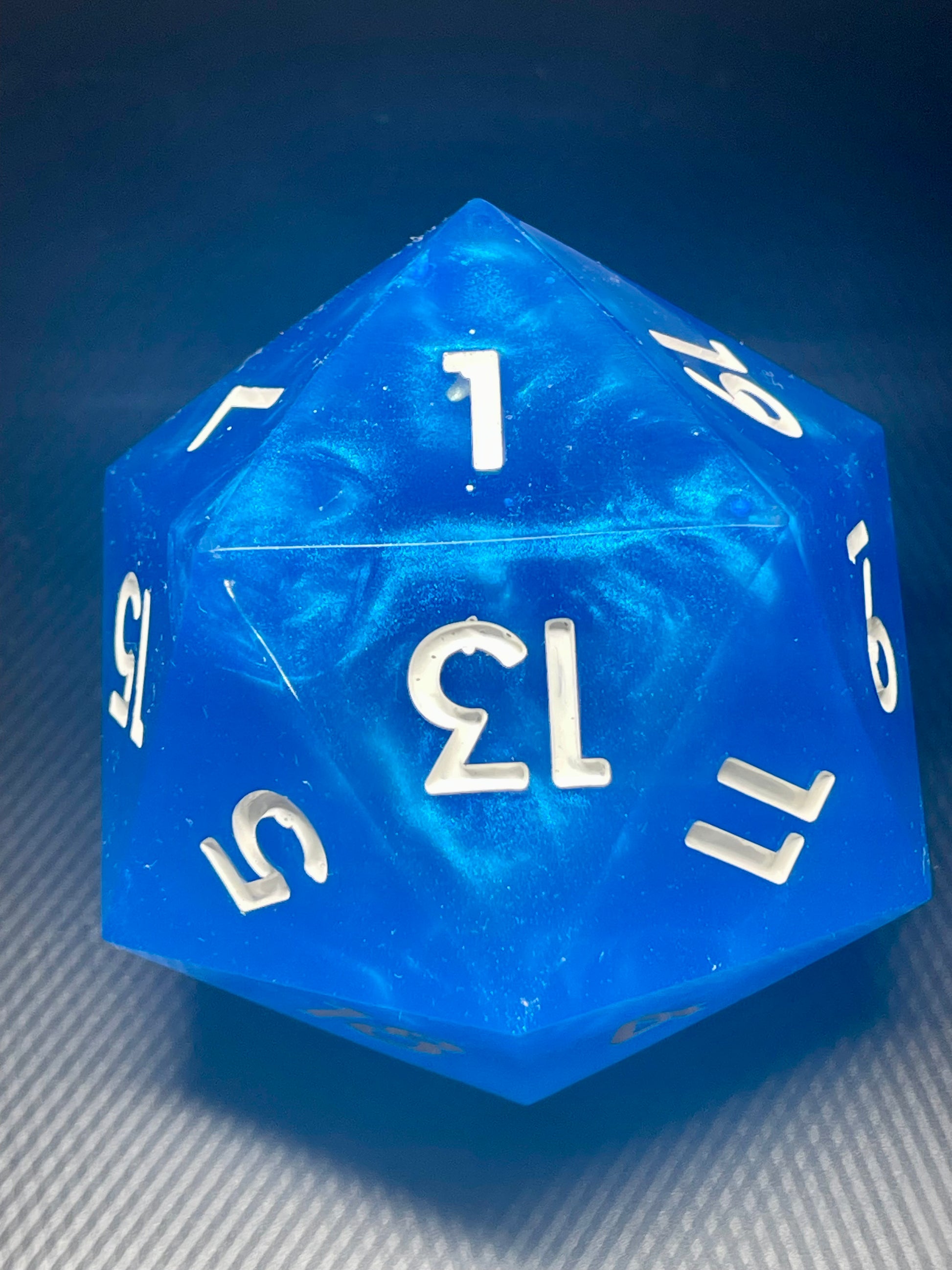 Stormcore 100mm D20 | D&D Dice | Dnd | Dice | Resin | Glitter | Giant | Huge | Oversized d20 | Handmade