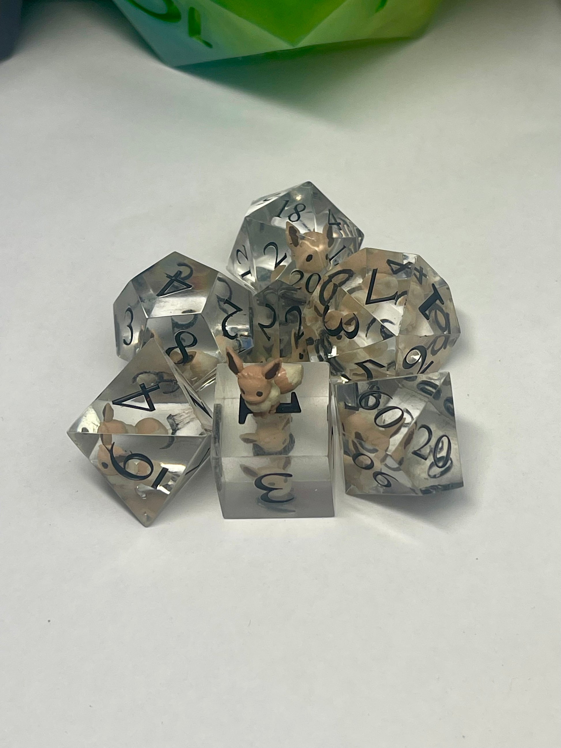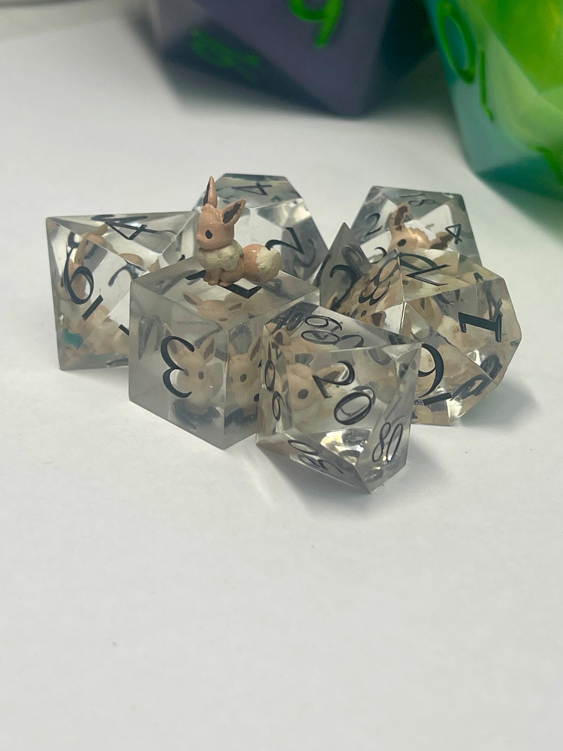 Eevee Dice Set | Handmade Resin Sharp Edge Dice | Pokémon D&D Dice | 7pc TTRPG Dice Gift