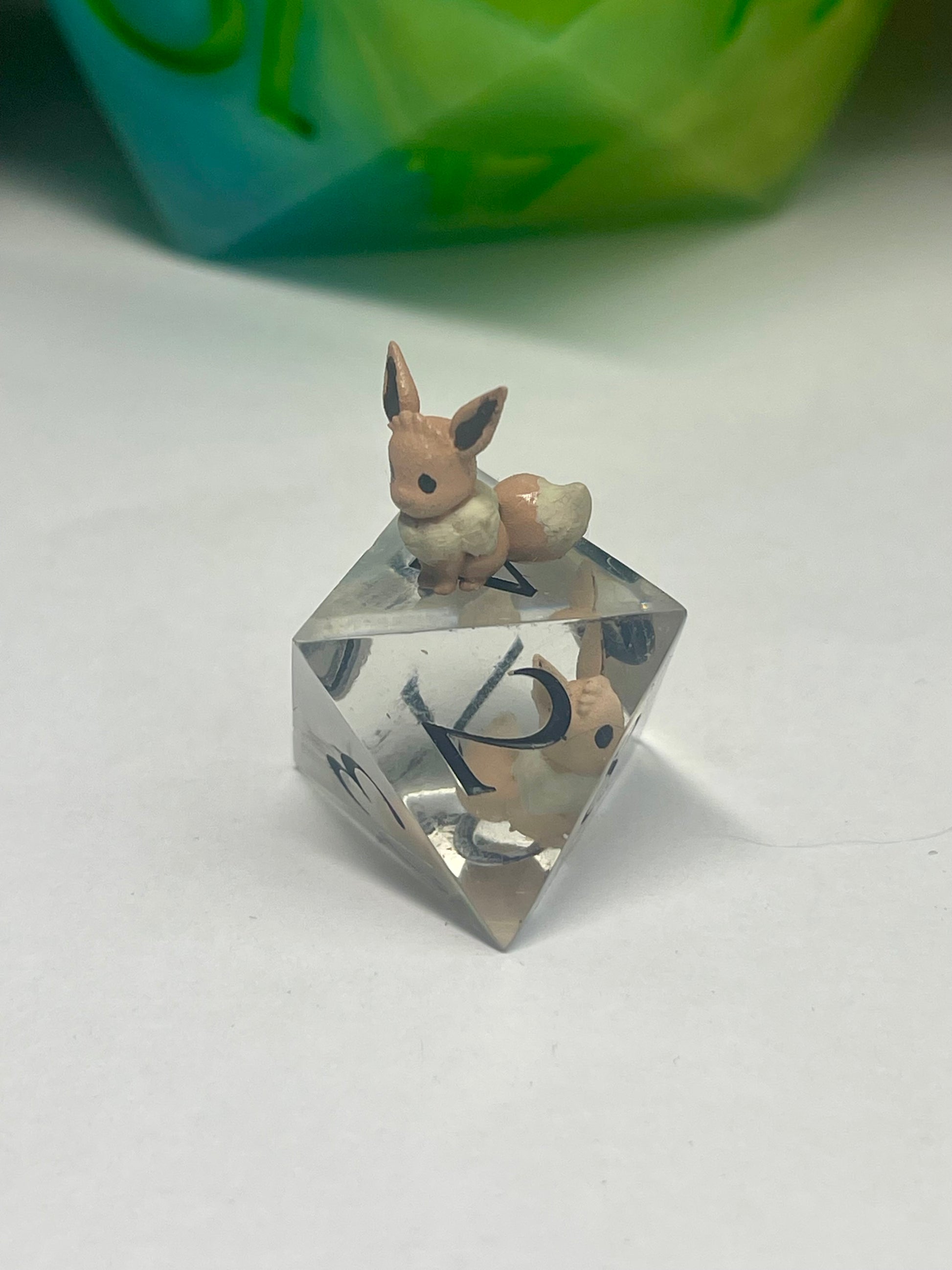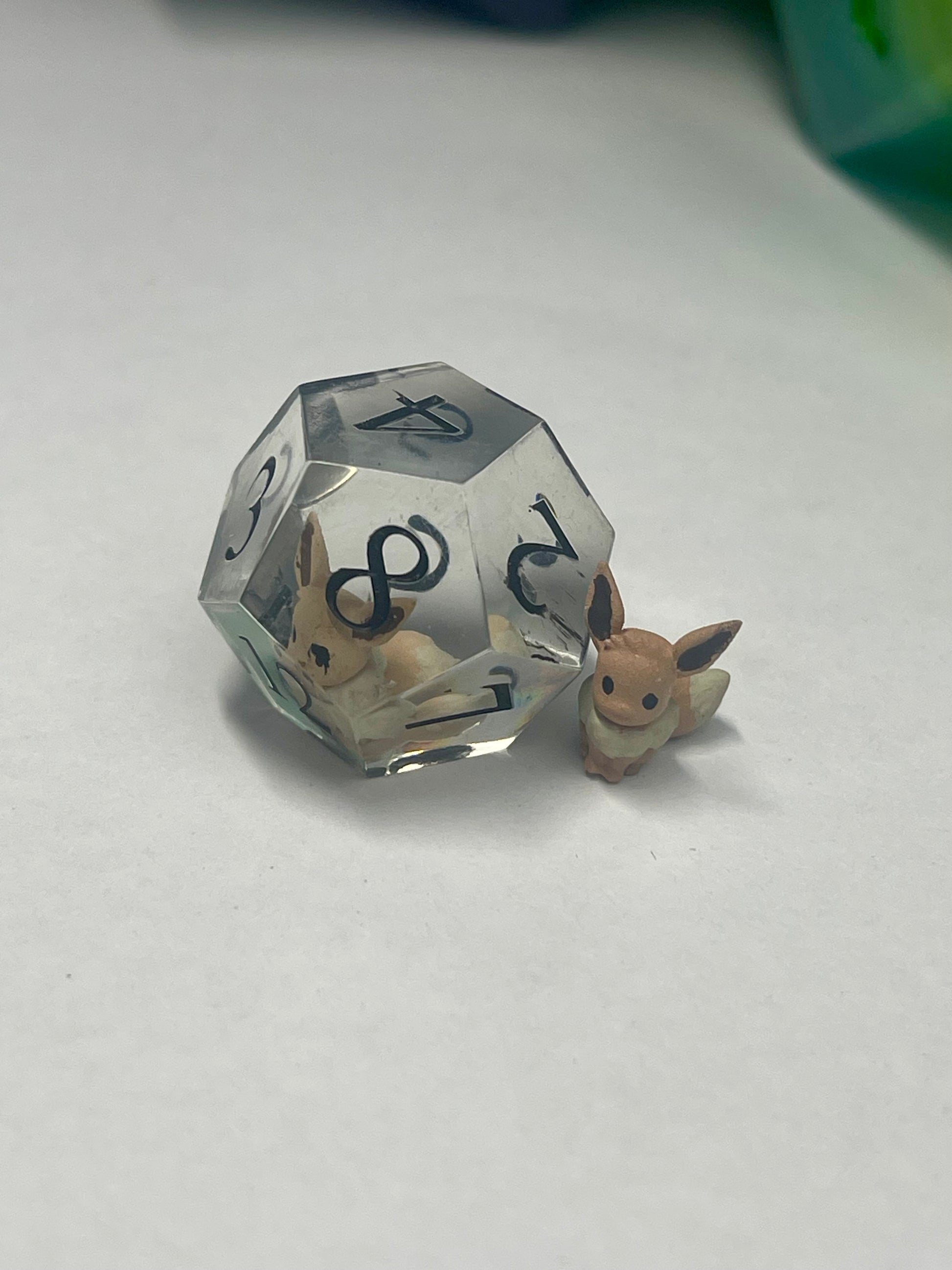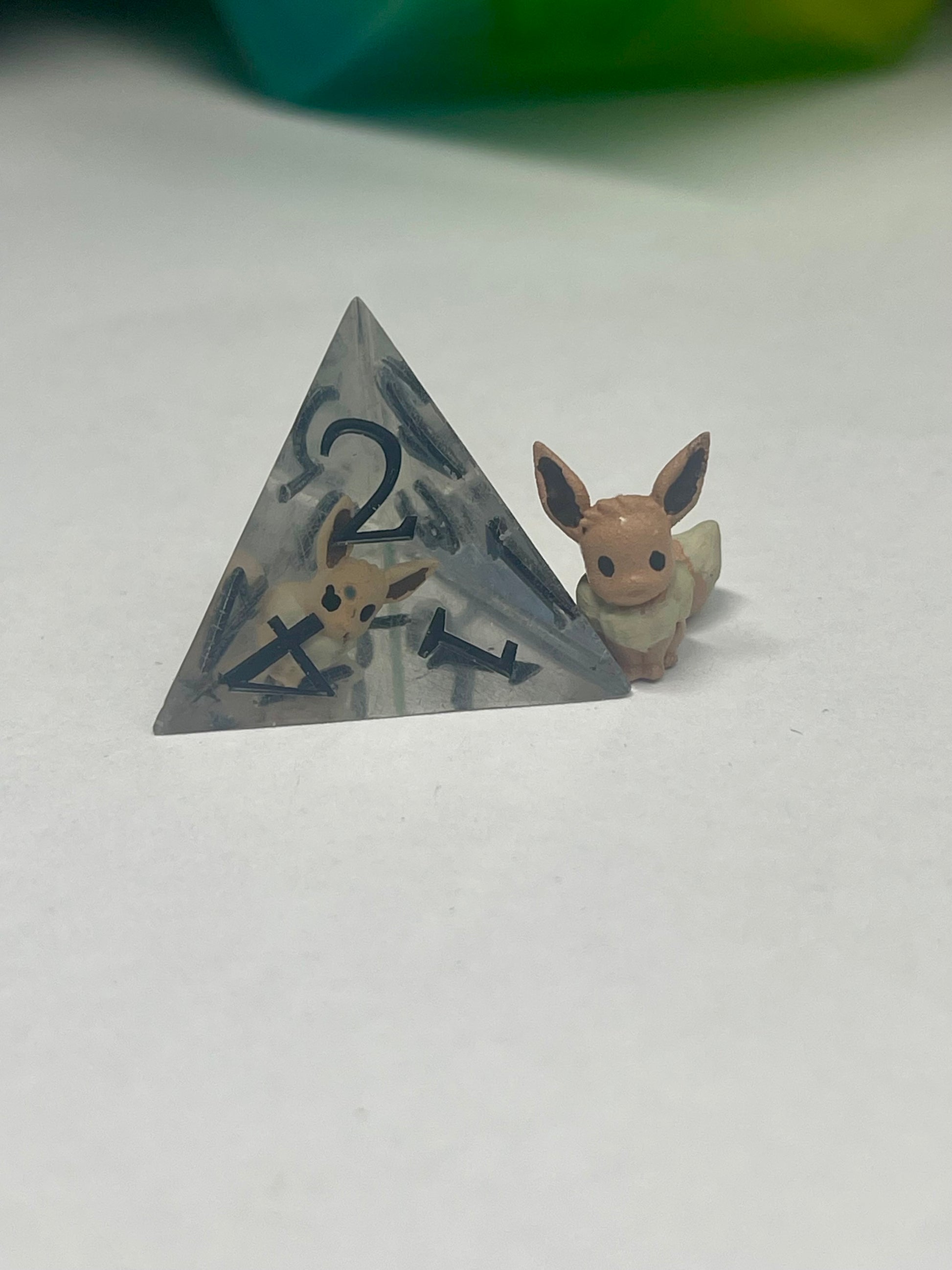 Add some Pokémon magic to your next adventure with this Eevee-inspired handmade dice set! Crafted from high-quality resin and polished with sharp edges, these dice bring out the warm tones and playful spirit of Eevee—perfect for tabletop gamers and collectors alike.