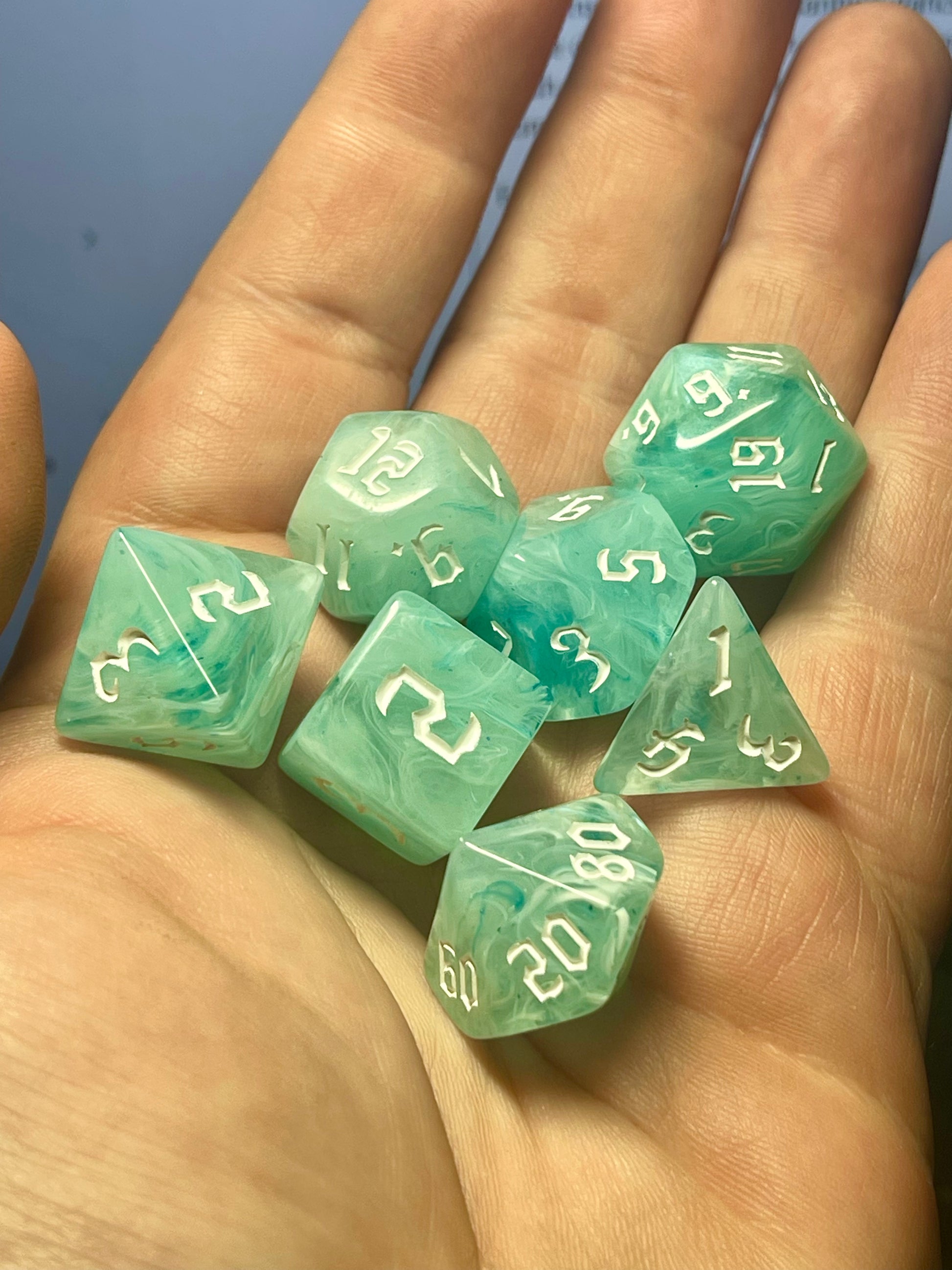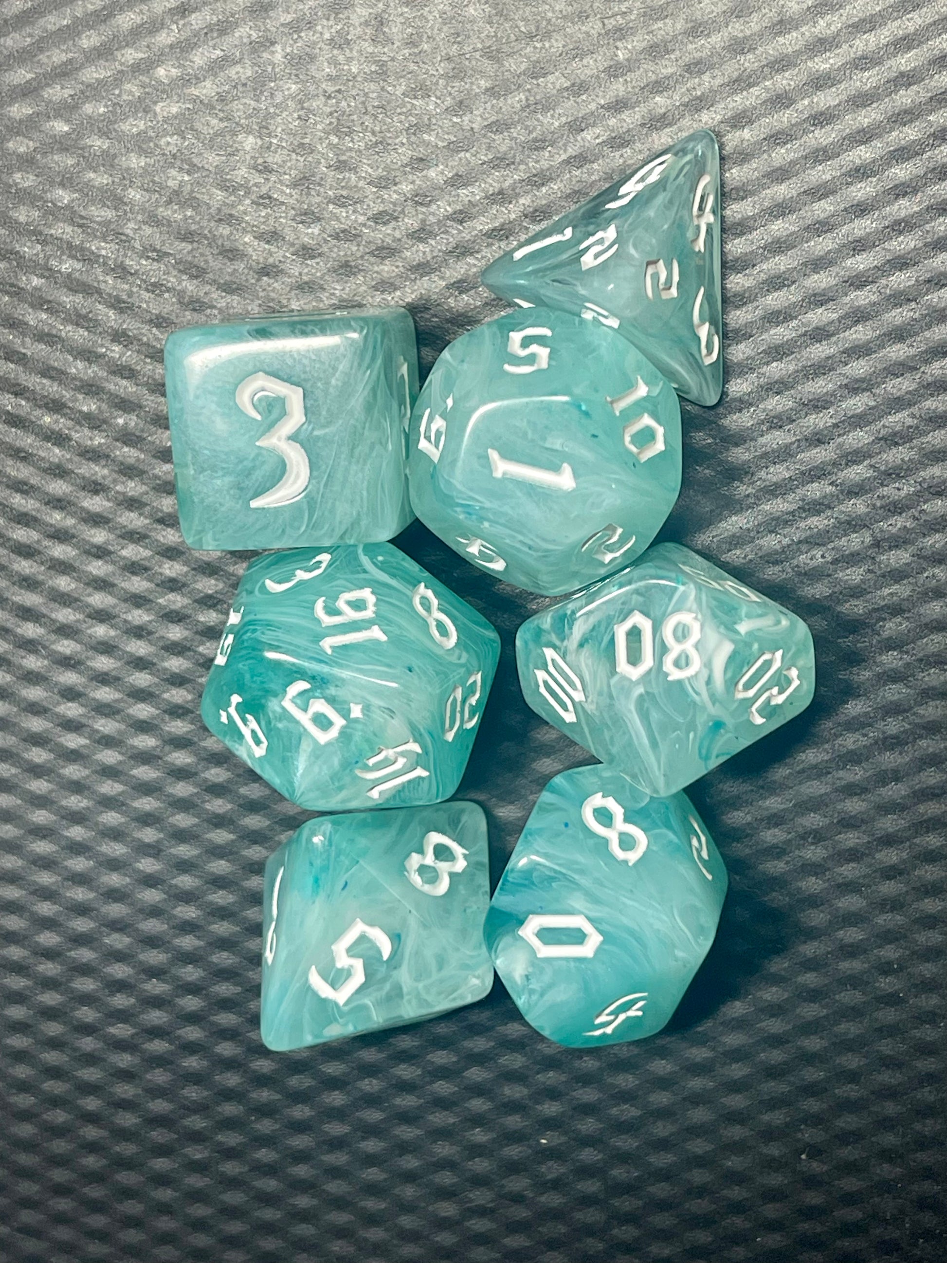 Glacier Mist Dice Set| D&D Dice | Dnd | 7pc | Dice Set | Acrylic Dice | Swirl |