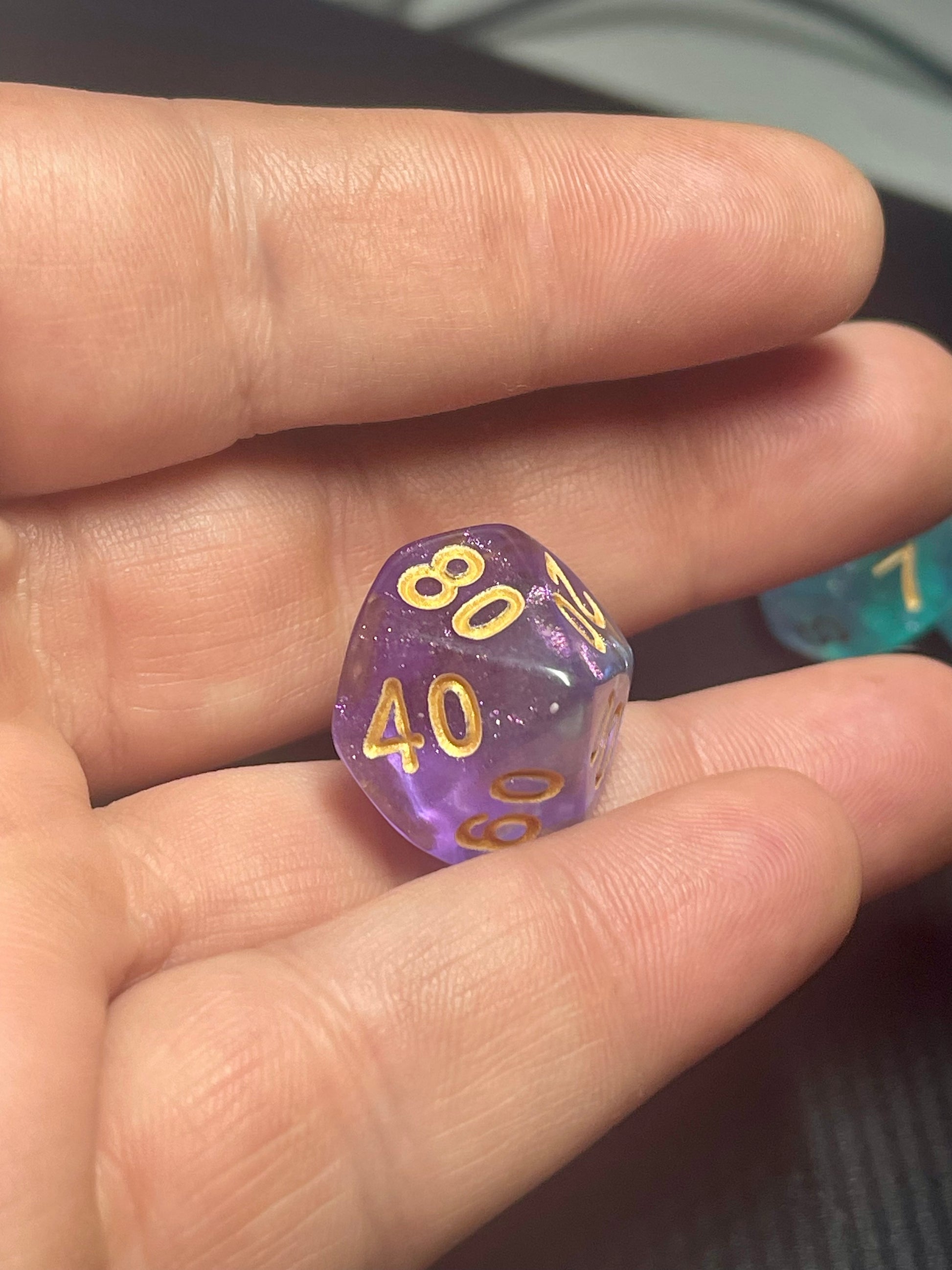 - Contains: 1 * d20, 1 * d12, 2 * d10 (1 percentage die), 1 * d8, 1 *d6, 1 * d4 dice.
