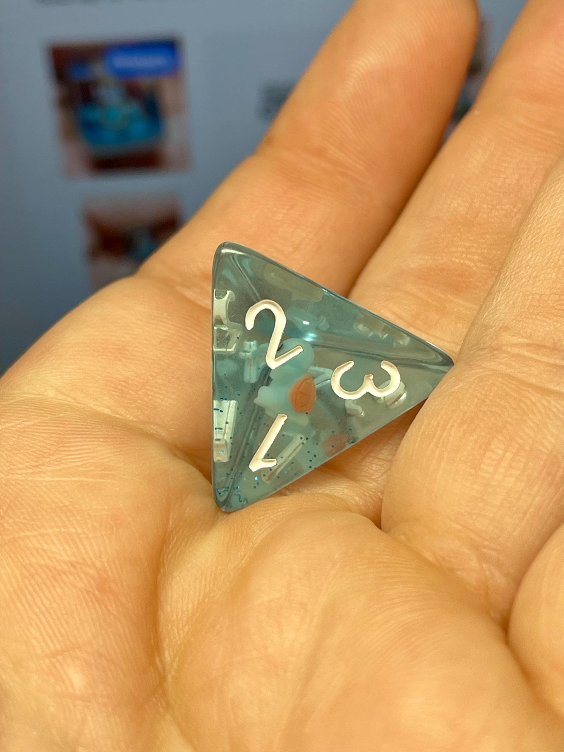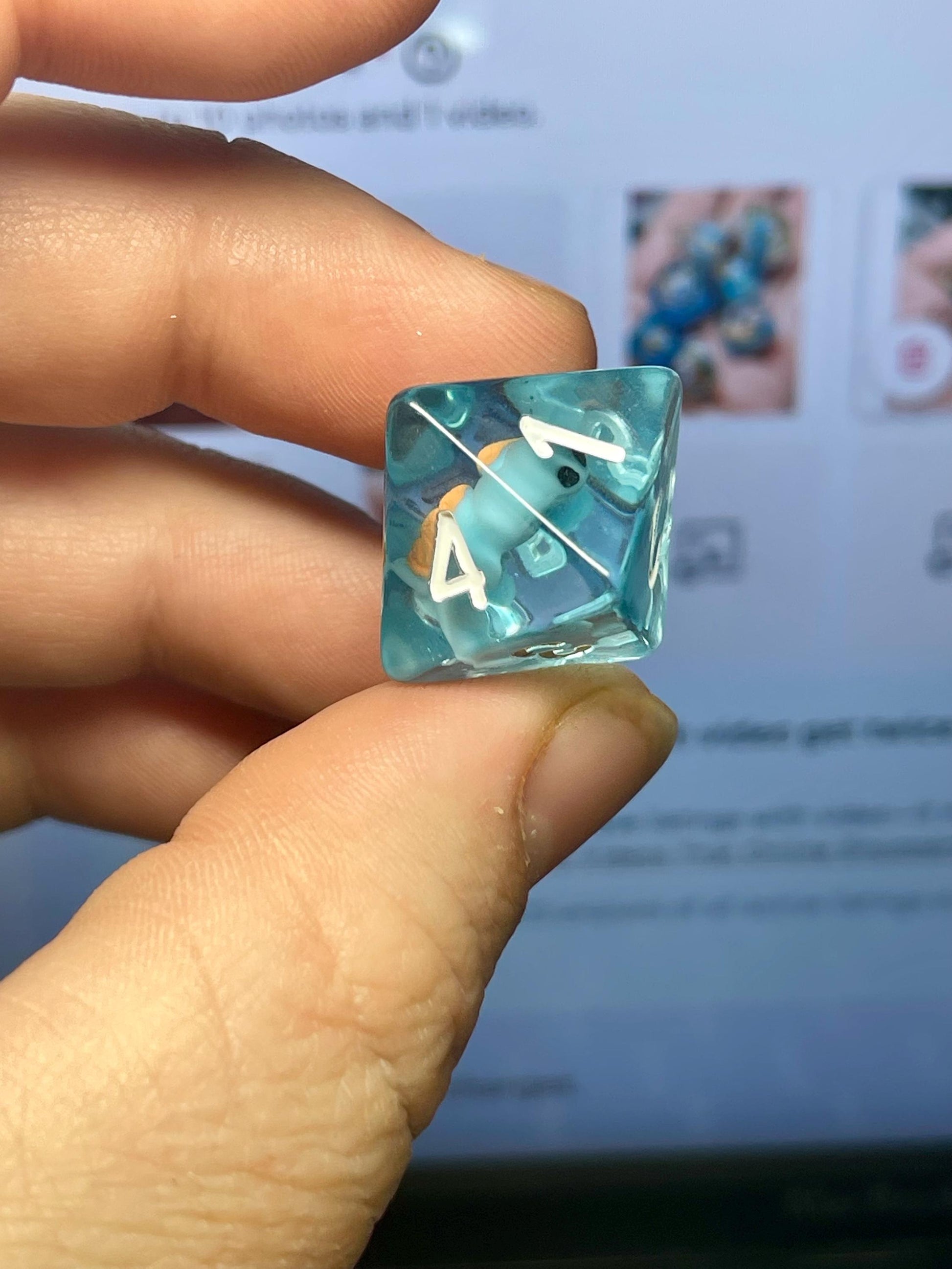 Unleash the power of Squirtle with our D&D dice set! Featuring 7 resin dice with a glittery twist, add some Pokemon flair to your game. (Gotta roll ‘em all!) Perfect for DnD enthusiasts and Pokemon trainers alike. Squirtle dice, I choose you!
